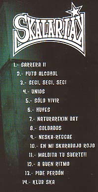 Skalariak : Klub Ska Le ska Espagnol fourmille de bon groupe et Skalariak en fait partie. Leur album est vraiment intéressant, on ne s'ennuie pas du début à la fin. Les titres s'enchaînent et c'est un réel plaisir. Notons l'originalité d'avoir traduit leurs textes en Francais, Anglais et allemand. Un album à posséder.
